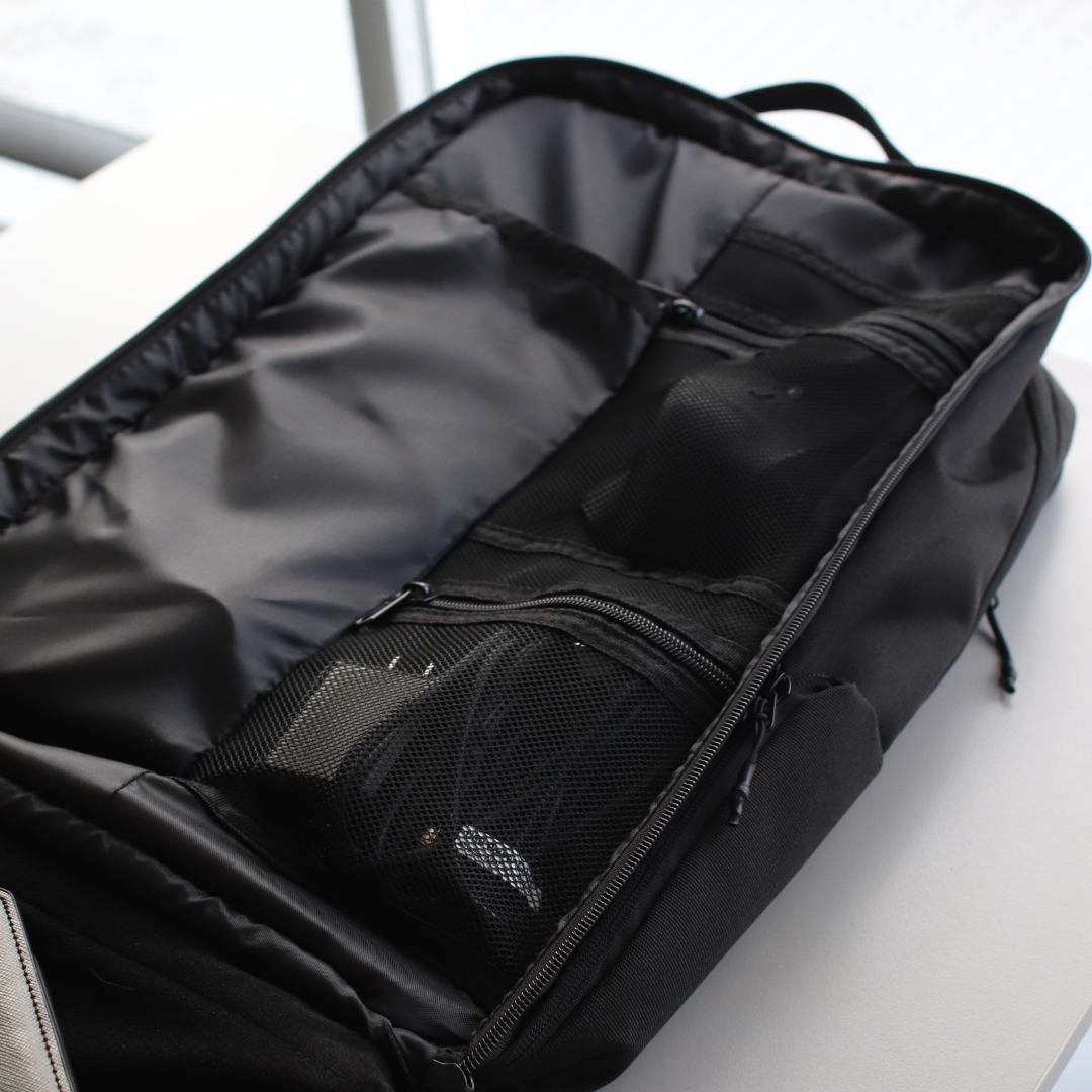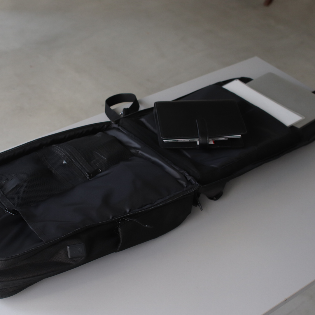 このバッグパックは、持ち物に専用の定位置を与え、無駄な「探す時間」や「迷う時間」を無くすことにフォーカスを当てました。常に整理された状態を保ち、あなたの脳を「今、やるべきこと・やりたいこと」に全振りさせます。